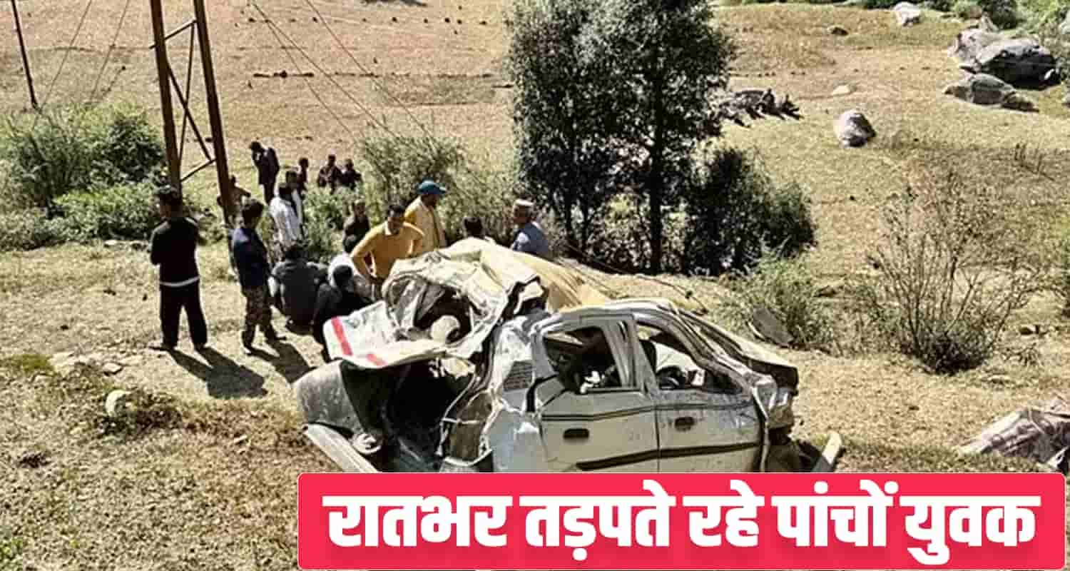 जिले के चौहरघाटी क्षेत्र में दर्दनाक हादसा पेश आया है। हादसे में एक मारुति कार गहरी खाई में गिर गई है। इस भयानक हादसे में पांच युवकों की एक साथ मौत हो गई है। ये पांचों युवक आपस में रिश्तेदार थे। मृतकों में से चार युवक धमच्यान गांव और एक बजोट गांव का रहने वाला था।