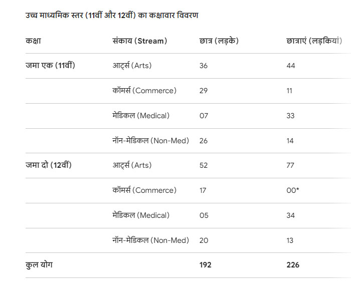 इस पाठशाला में 241 छात्र निजी स्कूलों को छोड़कर सरकारी पाठशाला की दहलीज पर पहुंचे हैं। इतना ही नहीं 134 छात्र अन्य सरकारी स्कूलों से भी स्थानांतरित होकर यहां आए हैं। स्कूल में बेटियों की भागीदारी भी उल्लेखनीय रूप से बढ़ी है। विभिन्न कक्षाओं और संकायों में छात्राओं की संख्या लगातार बढ़ रही है, जो शिक्षा के क्षेत्र में सकारात्मक सामाजिक बदलाव का संकेत है। वहीं, विशेष आवश्यकता वाले बच्चों के लिए भी स्कूल प्रशासन द्वारा संवेदनशीलता के साथ सुविधाएं उपलब्ध करवाई जा रही हैं।