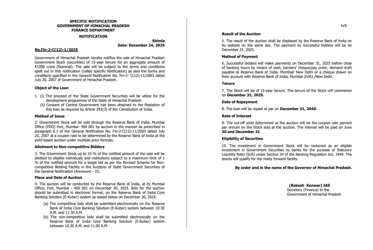 वित्त विभाग के सचिव आईएएस राकेश कंवर की ओर से जारी अधिसूचना के मुताबिक एक हजार करोड़ के कर्ज की राशि 31 दिसंबर 2025 को राज्य सरकार को प्राप्त होगी। इससे पहले 30 दिसंबर को इस कर्ज के लिए ऑक्शन आयोजित किया जाएगा। सरकारी दस्तावेजों में कर्ज लेने का उद्देश्य विकास कार्य बताया गया है, लेकिन जमीनी हकीकत यह है कि राज्य सरकार पर हर महीने वेतन और पेंशन का करीब 2000 करोड़ रुपए का दबाव बना हुआ है।
