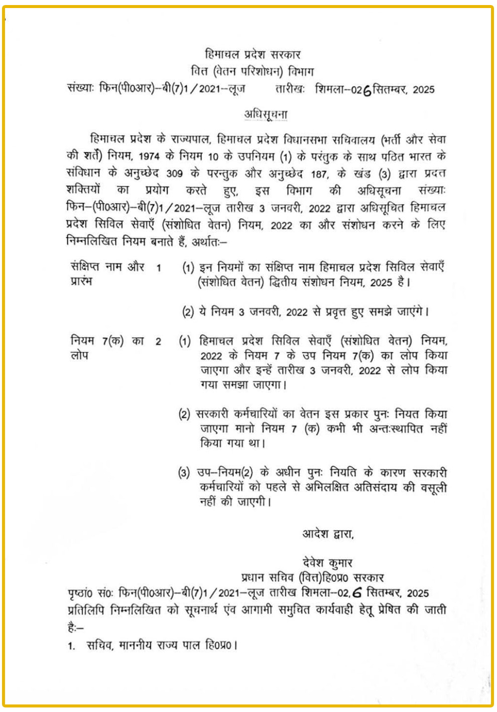 शिमला। हिमाचल प्रदेश सरकार द्वारा बीते कल यानी शनिवार को जारी की गई एक अधिसूचना ने प्रदेश के हजारों कर्मचारियों की चिंता बढ़ा दी है। राज्य सरकार ने उच्च वेतनमान (हायर ग्रेड-पे) से जुड़ी पुरानी अधिसूचना को रद्द कर दिया है, जिससे अब 89 श्रेणियों के कर्मचारियों का वेतन दोबारा तय किया जाएगा। इस फैसले को लेकर वित्त सचिव ने आधिकारिक आदेश जारी किया।