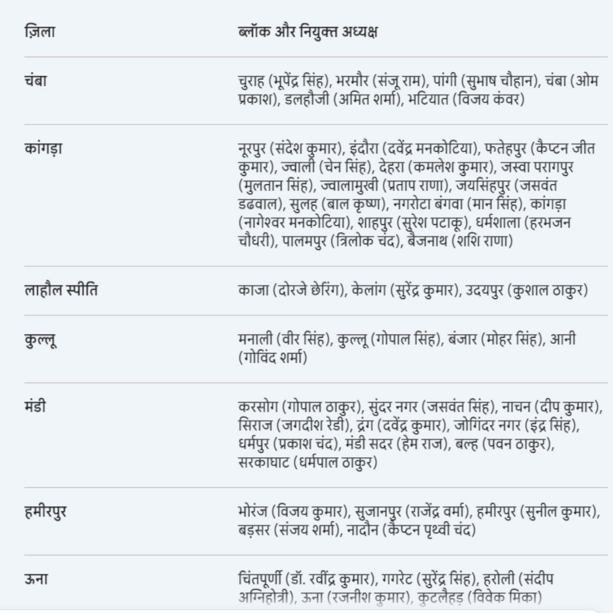 हिमाचल कांग्रेस ने 71 ब्लॉक में अध्यक्षों की नियुक्ति की
