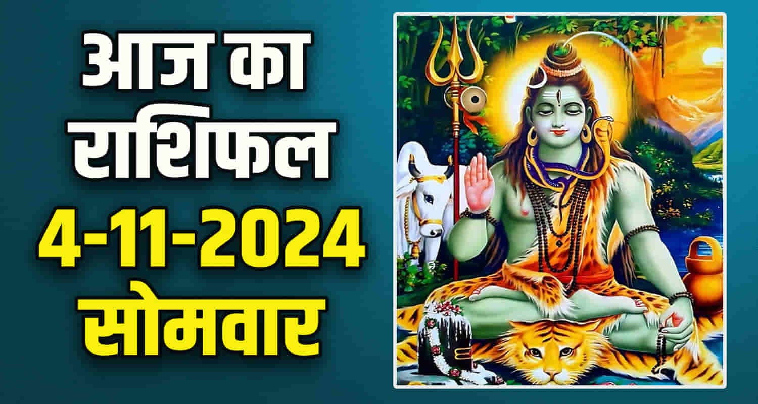 नई दिल्ली। हिंदू धर्म में राशिफल और ज्योतिष विद्या को काफी महत्व दिया गया है। ज्योतिष शास्त्र में कुल 12 राशियों का वर्णन किया गया है। राशिफल का आंकलन ग्रह-नक्षत्रों के अनुसार कर सकते हैं। आज 4 नवंबर दिन सोमवार है। हिंदू धर्म में सोमवार के दिन भगवान शिव शंकर की पूजा आराधना का विशेष महत्व है। इस खबर में हम आपको मेष, वृषभ, मिथुन, कर्क, सिंह और कन्या राशि के लोगों के राशिफल के बारे में बताएंगे।