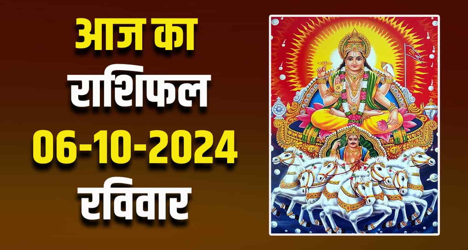 नई दिल्ली। हिंदू धर्म में राशिफल और ज्योतिष विद्या को काफी महत्व दिया गया है। ज्योतिष शास्त्र में कुल 12 राशियों का वर्णन किया गया है। राशिफल का आंकलन ग्रह.नक्षत्रों के अनुसार कर सकते हैं। आज 06 अक्टूबर दिन रविवार है। हिंदू धर्म में रविवार के दिन भगवान सूर्यदेव की पूजा आराधना का विशेष महत्व है। इस खबर में हम आपको मेष, वृषभ, मिथुन, कर्क, सिंह और कन्या राशि के लोगों के राशिफल के बारे में बताएंगे।