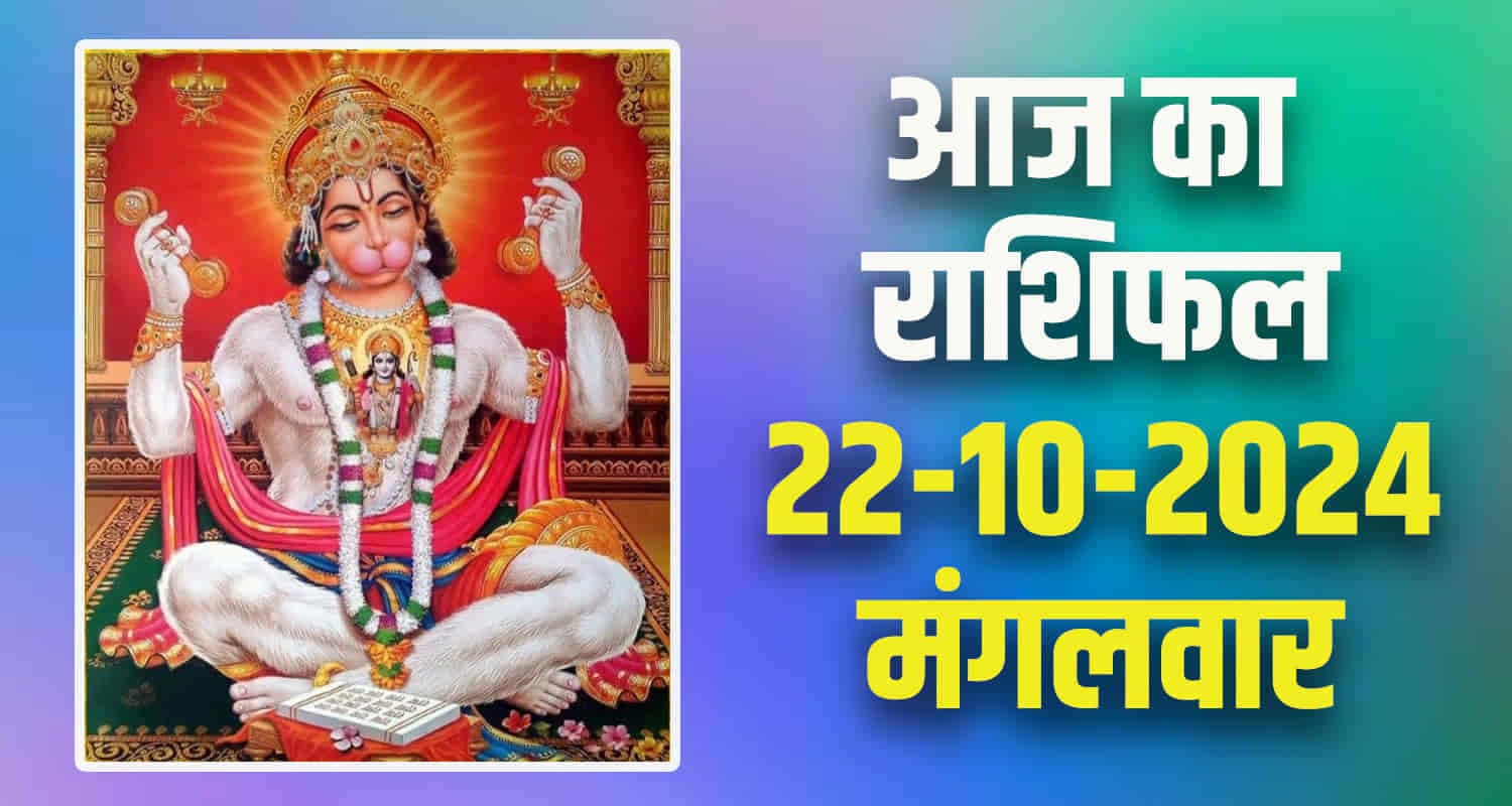 नई दिल्ली। हिंदू धर्म में राशिफल और ज्योतिष विद्या को काफी महत्व दिया गया है। ज्योतिष शास्त्र में कुल 12 राशियों का वर्णन किया गया है। राशिफल का आंकलन ग्रह-नक्षत्रों के अनुसार कर सकते हैं। आज 22 अक्तूबर दिन मंगलवार है। हिंदू धर्म में मंगलवार के दिन भगवान हनुमान जी की पूजा आराधना का विशेष महत्व है। इस खबर में हम आपको मेष, वृषभ, मिथुन, कर्क, सिंह और कन्या राशि के लोगों के राशिफल के बारे में बताएंगे।