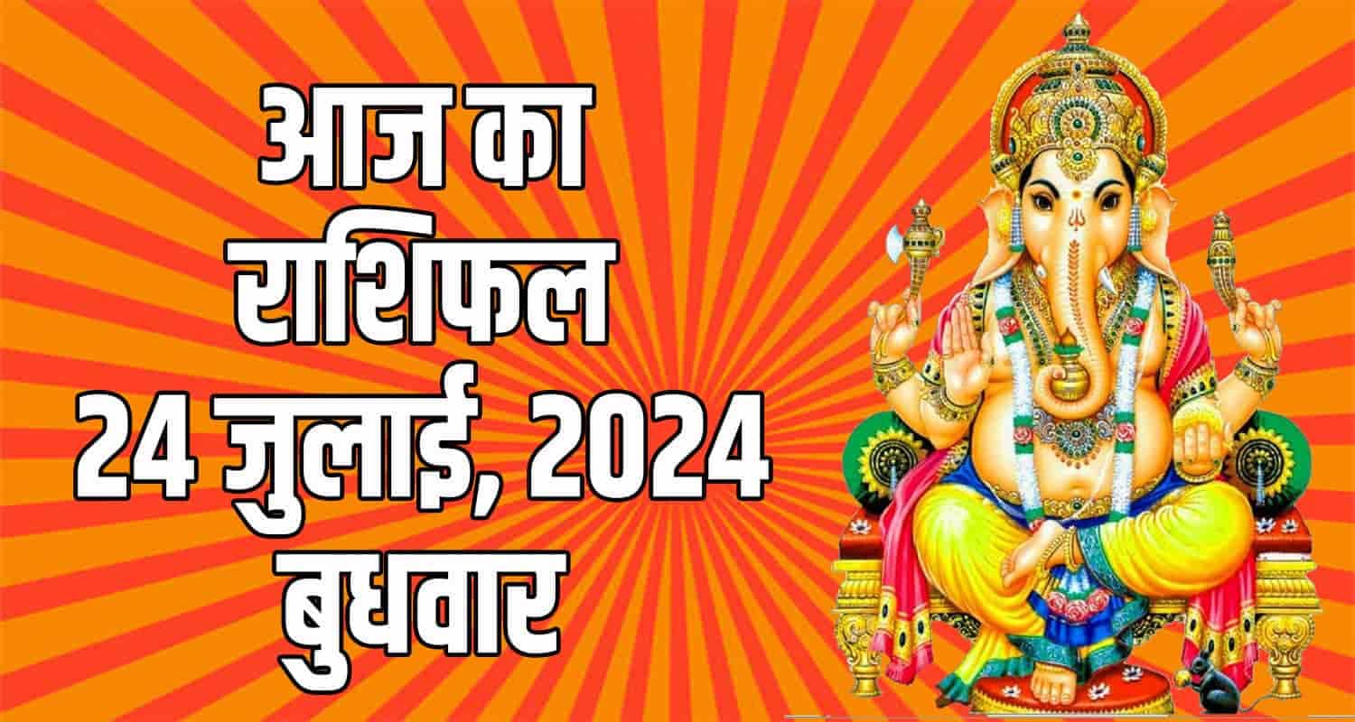 नई दिल्ली। हिंदू धर्म में राशिफल और ज्योतिष विद्या को काफी महत्व दिया गया है। ज्योतिष शास्त्र में कुल 12 राशियों का वर्णन किया गया है। राशिफल का आंकलन ग्रह-नक्षत्रों के अनुसार कर सकते हैं। आज 24 जुलाई दिन बुधवार है। हिंदू धर्म में आज के दिन भगवान गणेशजी की पूजा का विशेष महत्व है। इस खबर में हम आपको मेष, वृषभ, मिथुन, कर्क, सिंह और कन्या राशि के लोगों के राशिफल के बारे में बताएंगे।